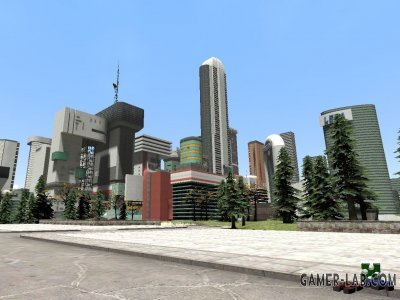 Очень большая карта города будущего. В некоторых зданиях есть интерьеры.