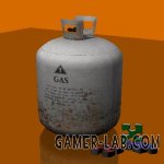 Газовый баллон с пропаном, держат руки в перчатках без пальцев