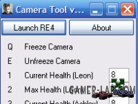 Программа делает камеру в игре статичной нажатием на одну кнопку. Также позволяет пополнить здоровье персонажа. Для использования распаковать архив в любое место, запустить игру, запустить Camera Tool v0.4 - US.exe (в архиве 2 файла для разных версий игры - американской и европейской), вернуться в игру. При нажатии на "Q" камера останется на месте, для восстановления камеры нажать "Е". Автор - Zaia.