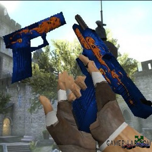 Ретекстур и реанимация обычного глока. Скины с закосом под CS:GO. Glock - Fire Elemental, Перчатки - Baggage. Имеются звуки выстрела из CS:GO.