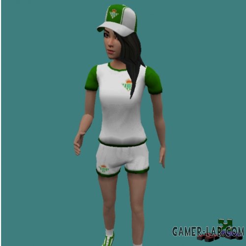 Beautiful girl dressed in the most elegant soccer outfit.