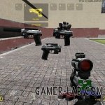 Хорошая модель пистолета из игры Perfect Dark с набором примочек: глушителя и оптики. Чтобы поставить нужную модель, выберите группу моделей с одинаковыми названиями (например, без примочек - v_falcon2.mdl и w_falcon2.mdl со всеми подгруппами физических моделей и прочего), и переименуйте соответственно в v_pistol.mdl и w_pistol.mdl.